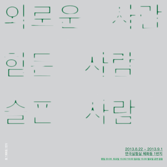 ¸ÕÀú 22ÀϺÎÅÍ 9¿ù1ÀϱîÁö ¼¿ï ´ëÇзΠ¿¬±Ø½ÇÇè½Ç Çýȵ¿1¹øÁö¿¡¼´Â Çѱ¹¿¹¼úÁ¾ÇÕÇб³(ÇÑ¿¹Á¾) ¿¬±Ø¿øÀÇ ¿Ã »ó¹Ý±â ÃÖ°í ÀÛǰ '¿Ü·Î¿î »ç¶÷, Èûµç »ç¶÷, ½½Ç »ç¶÷'ÀÌ °ø¿¬µÈ´Ù.