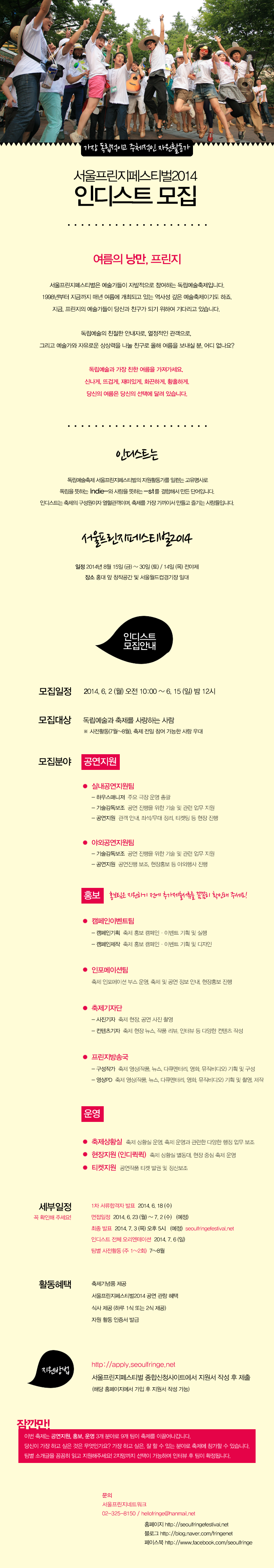 ¼¿ïÇÁ¸°ÁöÆä½ºÆ¼¹ú2014 ÀÚ¿øÈ°µ¿°¡ 'ÀÎµð½ºÆ®' ¸ðÁýÀ» ½ÃÀÛÇÕ´Ï´Ù.