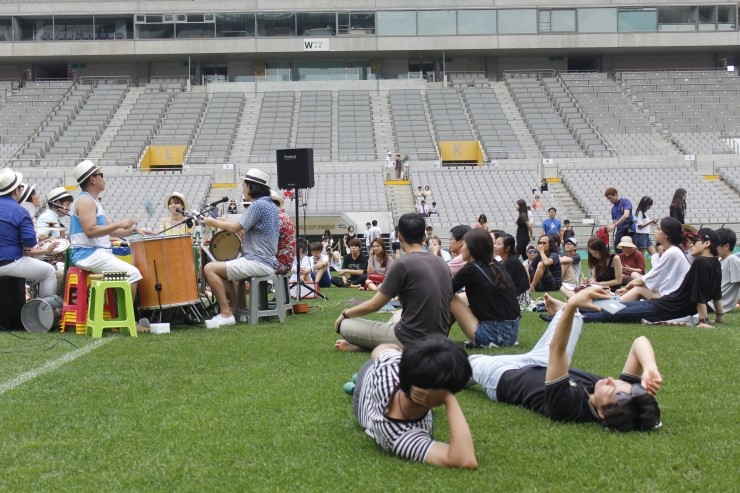 ¡®¿ì¸®ÀÇ ³ë·¡°¡ ´ç½ÅÀÇ ¸¶À½¿¡ º½ÀÌ µÉ ¼ö Àִٸ顯À̶ó´Â ¡®ÇÁ¸®¸¶º£¶ó¡¯ÀÇ ³ë·¡ °¡»ç°¡ ¿ï·Á ÆÛÁ³À» ¶§, Áö±Ý ÀÌ ¼ø°£ÀÌ À̰÷¿¡ ã¾Æ¿Â ¸ðµç À̵鿡°Ô ÇÑ¿©¸§ ¹ãÀÇ ²Þó·³ ªÀº º½À¸·Î ±â¾ïµÇ¸®¶ó´Â »ý°¢À» Çß´Ù. ÅÖ ºñ¾î ÀÖ´Â °Å´ë °ø°£À» »õ·Î¿î ¿¹¼úÀÇ ½Ãµµ°¡ °¡´ÉÇÑ °ø°£ÀÌÀÚ ÃàÁ¦ÀÇ ÀåÀ¸·Î º¯È½Ã۰íÀÚ ¡®È«´ë ¾Õ¡¯À» ¶°³ª ¡®¼¿ï¿ùµåÄŰæ±âÀ塯À¸·Î °ø°£À» ¿Å±ä ¡®¼¿ïÇÁ¸°ÁöÆä½ºÆ¼¹ú¡¯ÀÇ ½Ãµµ°¡ Á¶±×¸Ä°Ô ½ÏÀ» Æ·¿ì´Â ÇöÀåÀ» ¸ñ°ÝÇÑ µíµµ Çß´Ù. Æò¼Ò ÀÏ¹Ý ½Ã¹Îµé¿¡°Ô´Â °³¹æµÇÁö ¾Ê´Â °ø°£ÀÌÀÚ, ÀÏ»óÀûÀ¸·Î´Â ¼·ÎÀÇ ¸ö°ú ¸öÀÌ ºÎµúÄ¡´Â °æÀïÀÇ Àå¼Ò¿´´ø °æ±âÀåÀÌ ¼·ÎÀÇ ¸ñ¼Ò¸®¿Í ¿ôÀ½À» µè°í, ÇÔ²² À½¾Ç°ú ÃàÁ¦ÀÇ À̾߱⸦ ³ª´©´Â Àå¼Ò·Î µÚ¹Ù²ï ÇöÀå¿¡¼ Á÷Á¢ ÃãÀ» Ãß°í À½¾ÇÀ» µéÀ¸¸ç ´À³¤ °ÍÀÌ´Ù.