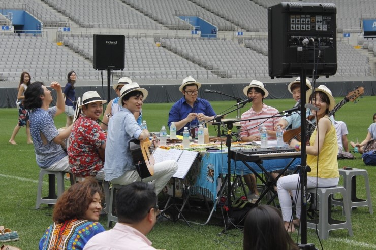 ´ÙÇÔ²² µÕ±×·¸°Ô µÑ·¯¾É¾Æ ÃãÃß°í ³ë·¡ÇÏ´Â ºê¶óÁú¸®¾ðµéÀÇ ÀÏ»ó ¼Ó ÀÜÄ¡À½¾ÇÀÎ ¡®»ï¹Ù(Samba)¡¯¸¦ ¿¬ÁÖÇÏ´Â ÆÀ´ä°Ô ¿¬ÁÖ¸¦ ½ÃÀÛÇÏÀÚ Ã౸ °æ±â°¡ ÀÏ»óÀûÀ¸·Î ÆîÃÄÁö´Â Àܵ𠱤Àå °¡¿îµ¥¿¡ °ü°´µéÀÌ ÇÔ²² µÕ±×·¸°Ô ¸ð¿© ¾É¾Æ °È°í, µè°í, ¸»Çϰí, ÃãÃß°í, ¼ÕÀâ°í, ¿ô´Â »ö´Ù¸¥ dz°æÀÌ ÆîÃÄÁ³´Ù. Æò¼Ò Ã౸ °æ±â¿Í ´ëÇü ÄܼƮÀÇ ½ÇÇà Àå¼Ò·Î »ç¿ëµÇ´ø ¡®¼¿ï¿ùµåÄŰæ±âÀ塯ÀÇ Ã౸ ±×¶ó¿îµåÀÎ Àܵð±¤ÀåÀÌ À½¾Ç°ú ÃàÁ¦¸¦ »ç¶ûÇÏ´Â À̵éÀÇ ¼Ò´ãÇÏ°í µû¶æÇÑ °ø¿¬ÀåÀ¸·Î ¹Ù²ï °ÍÀÌ´Ù. À½ÇâÀåºñ¿Í Á¶¸í µîÀ» ÃÖ¼ÒÈÇØ ÁøÇàµÈ ¾îÄí½ºÆ½ °ø¿¬Àε¥´Ù, °ø¿¬¿¡ Âü¿©ÇÏ´Â ÀÌµé ¸ðµÎ Àܵð±¤Àå¿¡ ¸Ç¹ß·Î ÀÔÀåÇØ ÀÚÀ¯·Ó°Ô °ø¿¬À» °ü¶÷ÇÑ ´öÅÃÀÎÁö ¡®ÇÁ¸®¸¶º£¶ó¡¯ÀÇ ¸ñ¼Ò¸®¿Í ¿¬ÁÖ, °ü¶÷°´ÀÎ ¾î¸° ¾ÆÀ̵é°ú ¿¬Àεé, Ä£±¸µéÀÇ ¿ôÀ½°ú ´ëȰ¡ À¯ÄèÇÏ°Ô Çѵ¥ ¾î¿ì·¯Á® °æ±âÀå ÇѰ¡¿îµ¥°¡ ¼ø½Ä°£¿¡ ȯÇÏ°Ô ¹à¾ÆÁø ´À³¦¸¶Àú µé¾ú´Ù.