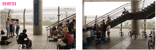 °æ±âÀåÀº ÃÑ ´Ù¼¸ ÃþÀ¸·Î ±¸¼ºµÇ¾îÀÖ½À´Ï´Ù. ±×¸¸Å Ãþ°ú Ãþ »çÀ̸¦ °Ç³Ê°¥ °è´Ü ¶ÇÇÑ ¸¹ÀÌ ¼³°èµÇ¾î ÀÖ½À´Ï´Ù. °æ±âÀåÀÇ ¸¹Àº ºÎºÐÀ» Â÷ÁöÇÏÁö¸¸, ¿ª½Ã³ª °æ±â ÀÖ´Â ³¯ À̿ܿ¡´Â »ç¶÷ÀÇ ¹ß±æÀÌ Á»Ã³·³ ´êÁö ¾Ê½À´Ï´Ù. ÇÁ¸°ÁöÆä½ºÆ¼¹ú¿¡¼ ¿¹¼ú°¡µéÀÇ ¼Õ±æÀÌ ´êÀ¸¸é¼ 365ÀÏÁß 300ÀÏÀº ¾µ¸ð¾øÀÌ ¹æÄ¡µÈ °è´Ü ¿ª½Ã °ø¿¬Àå¼Ò°¡ µÇ¾ú½À´Ï´Ù. ÀÌÁ¦ ¸· ´ëÇÐÀ» Á¹¾÷ÇÑ ÀþÀºÀ̵éÀÌ ¸ðÀÎ ±Ø´Ü ¡®¹°À½Ç¥¡¯´Â Ãþ°è¿Í ±× ¾Æ·¡ÀÇ ºó °ø°£À» °ø¿¬¹«´ë·Î °¡²Ù¾ú½À´Ï´Ù. °è´Ü ¾Æ·¡ õ¸·À» µÎ¸£°í Ãþ°è¸¦ õÀå»ï¾Æ ¾Æ´ÁÇÑ °ø°£À» ¸¸µé¾ú½À´Ï´Ù. Çö½Ç°¨ ³ÑÄ¡´Â °ø°£Àº ¸¶Ä¡ ½ÇÁ¦·Î û³âµé°ú ¸ð¿© À̾߱⠳ª´©´ÂµíÇÑ ºÐÀ§±â¸¦ ÀھƳ» ¿¬±Ø¿¡ ´õÇÑ »ý±â¸¦ ºÒ¾î³Ö¾ú½À´Ï´Ù. ¡®Ä£±¸³× ¿Á»ó ART¡¯ ÆÀÀº °´¼®À» °è´ÜÀ¸·Î Ȱ¿ëÇÏ¿© °¡¸é±ØÀ» ¿¾ú½À´Ï´Ù. ÀÌó·³ °è´ÜÀº °ü°´µéÀÌ ¾É¾Æ¼ °ø¿¬À» °ü¶÷ÇÏ´Â °´¼®ÀÌ µÇ±âµµ ÇÏ°í ¹Ý´ë·Î ¿¹¼ú°¡µéÀÇ Àü½Ã¹«´ë·Î Ȱ¿ëµÇ±âµµ ÇÕ´Ï´Ù.