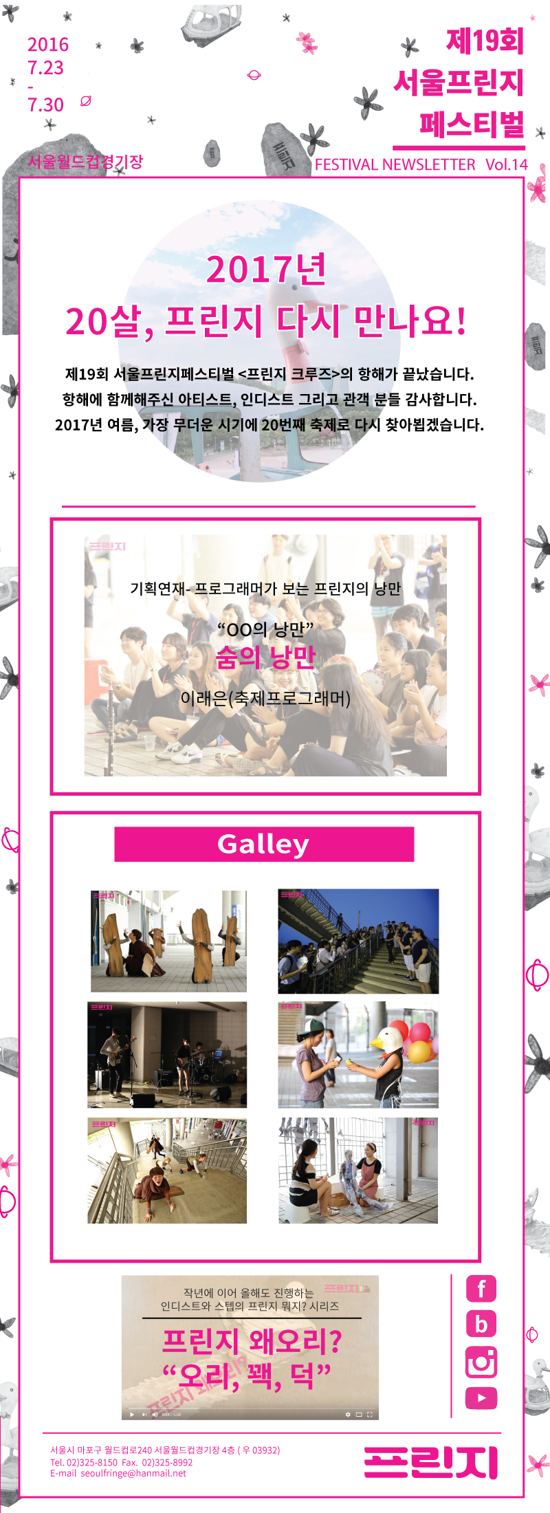 [SFF2016.Vol.14] Á¦19ȸ ¼¿ïÇÁ¸°ÁöÆä½ºÆ¼¹ú ÈĹÝÀü Á¾·á!! °¨»çÇÕ´Ï´Ù!!