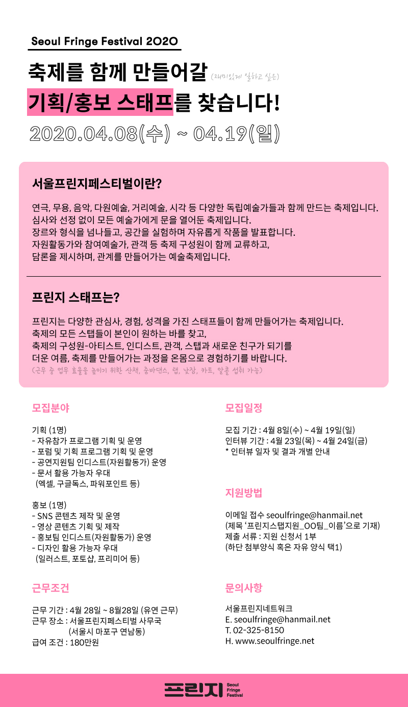 [¸ðÁý] ¼¿ïÇÁ¸°ÁöÆä½ºÆ¼¹ú2020 ±âȹ/È«º¸ ½ºÅÂÇÁ ¸ðÁý