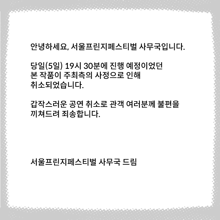 [¼¿ïÇÁ¸°ÁöÆä½ºÆ¼¹ú2021] °ø¿¬ Ãë¼Ò °øÁö (¾ÆÆ®¿öÄ¿ ½ºÆäÀ̽º / 08. 05)