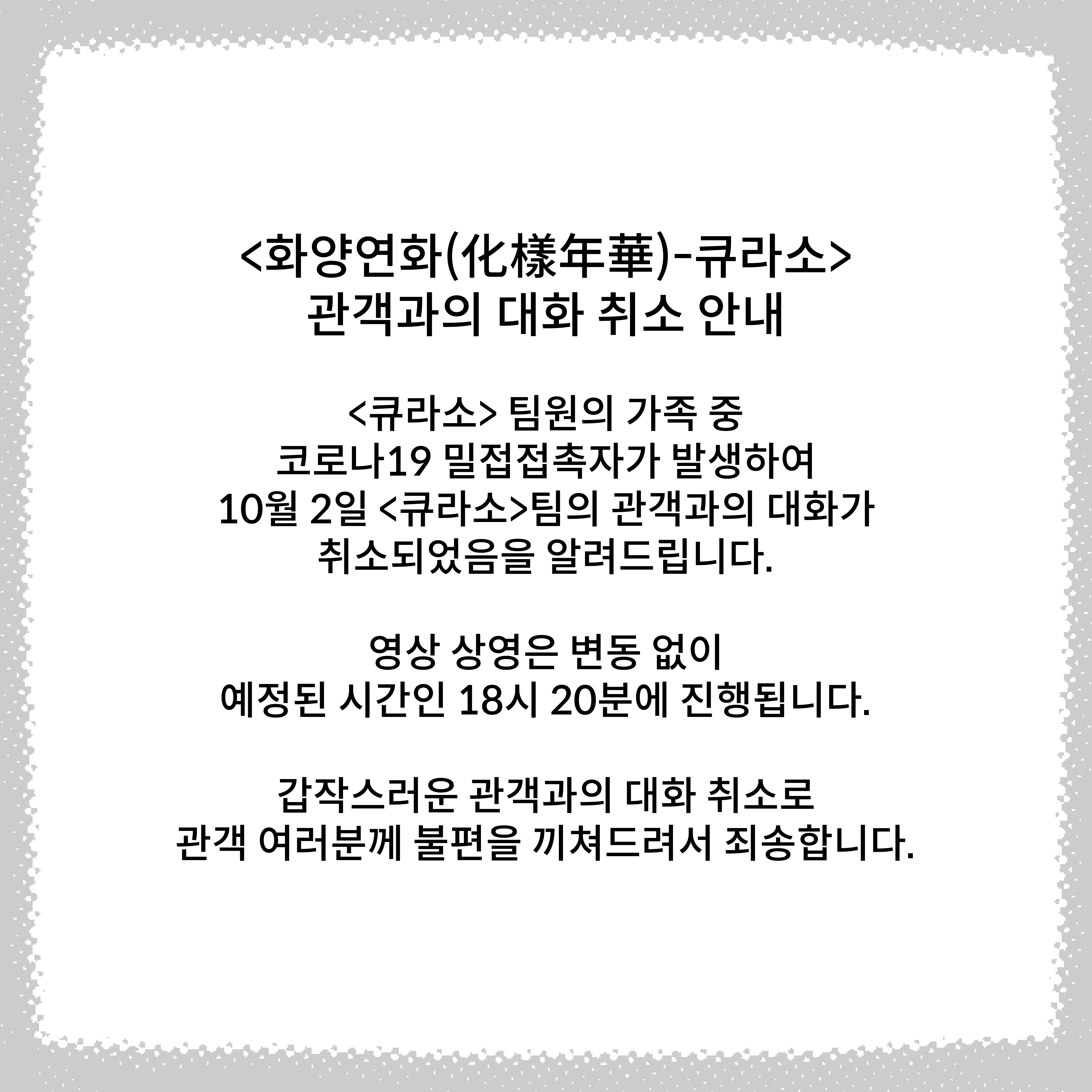 [¼¿ïÇÁ¸°ÁöÆä½ºÆ¼¹ú2021] °ü°´°úÀÇ ´ëÈ Ãë¼Ò °øÁö (Å¥¶ó¼Ò - Ⱦ翬È(ûùåÆÒ´ü¤) / 10.02)