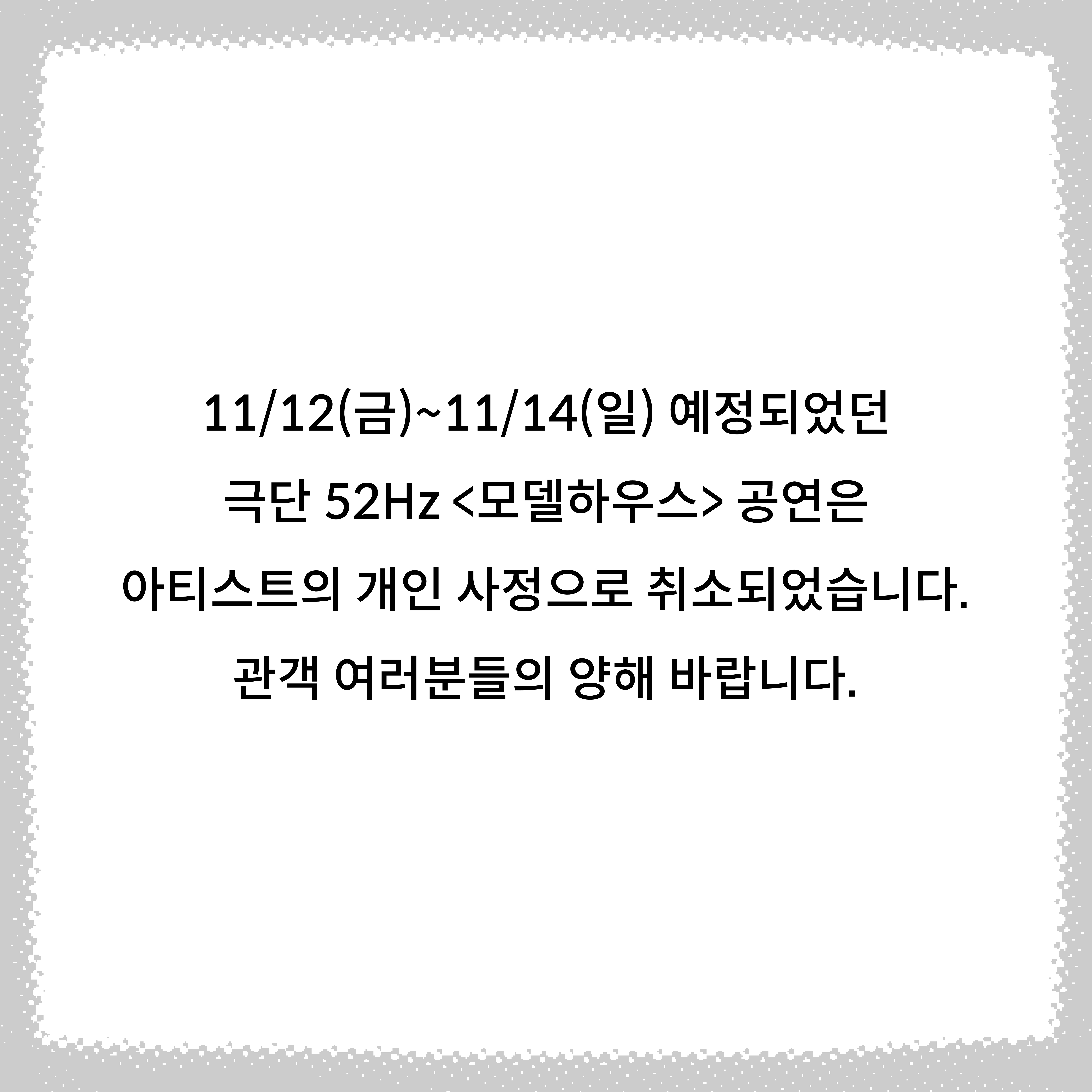 11/12(±Ý)~11/14(ÀÏ) ¿¹Á¤µÇ¾ú´ø ±Ø´Ü 52Hz <¸ðµ¨ÇϿ콺> °ø¿¬Àº