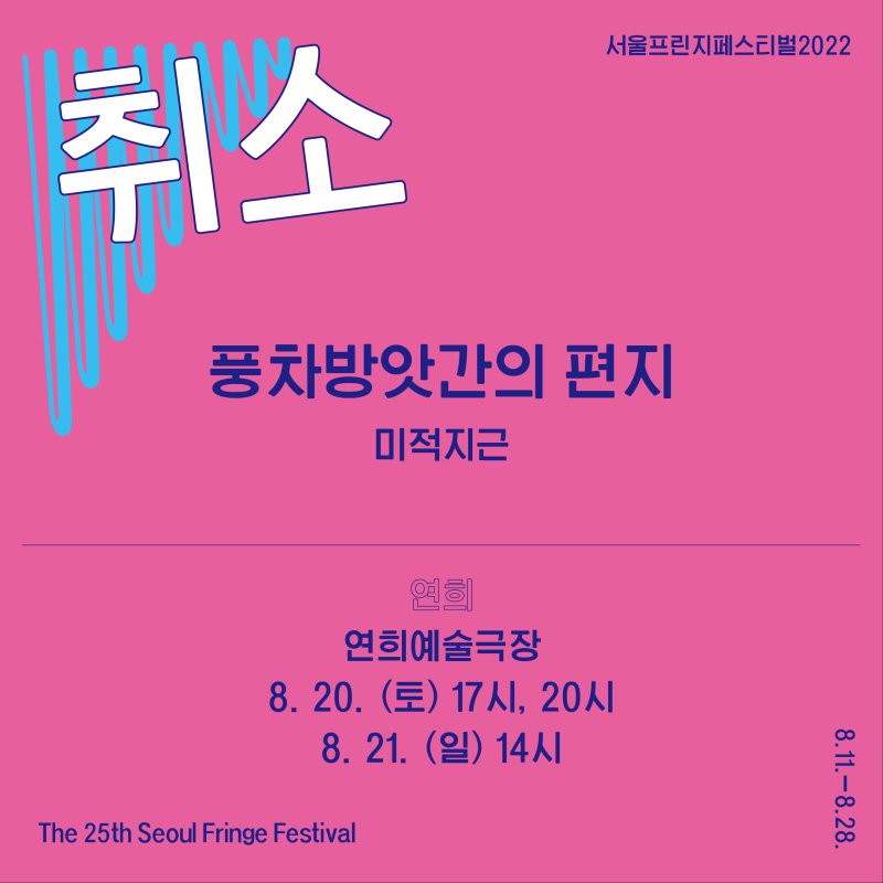 [¼¿ïÇÁ¸°ÁöÆä½ºÆ¼¹ú2022] ¹ÌÀûÁö±Ù <dzÂ÷¹æ¾Ñ°£ÀÇ ÆíÁö> Ãë¼Ò ¾È³»