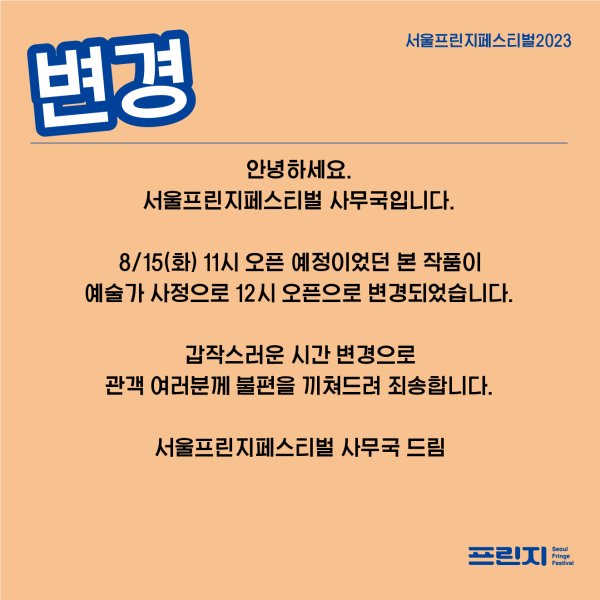 [¼¿ïÇÁ¸°ÁöÆä½ºÆ¼¹ú2023] ÆÀ ÆÄ¶ó¶õ <À¯·É - ¾¾¾Ñ> Àü½Ã ¿ÀÇ ½Ã°£ º¯°æ ¾È³» (08.15 È)
