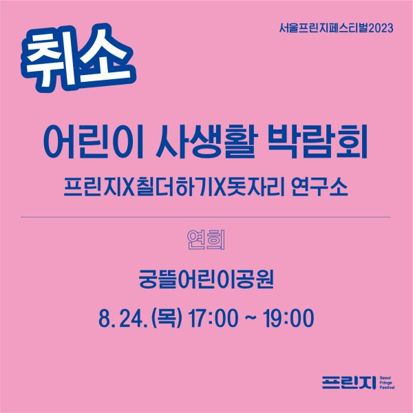 [¼¿ïÇÁ¸°ÁöÆä½ºÆ¼¹ú2023] ±âȹÇÁ·Î±×·¥ <¾î¸°ÀÌ »ç»ýȰ ¹Ú¶÷ȸ> ÁøÇà Ãë¼Ò ¾È³» (8.25¸ñ)