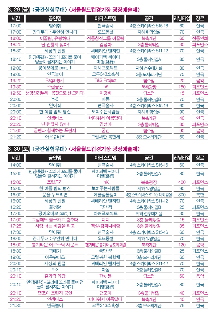 µåµð¾î! ¼¿ï¿ùµåÄŰæ±âÀå ±¤À忹¼úÁ¦, °ø°£½ÇÇ蹫´ë°¡ ½ÃÀ۵˴ϴÙ. (8/29~30)