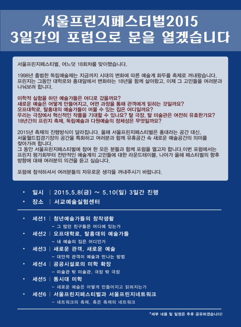 ¼¿ïÇÁ¸°ÁöÆä½ºÆ¼¹ú2015, Æ÷·³À¸·Î ½ÃÀÛÇÕ´Ï´Ù
