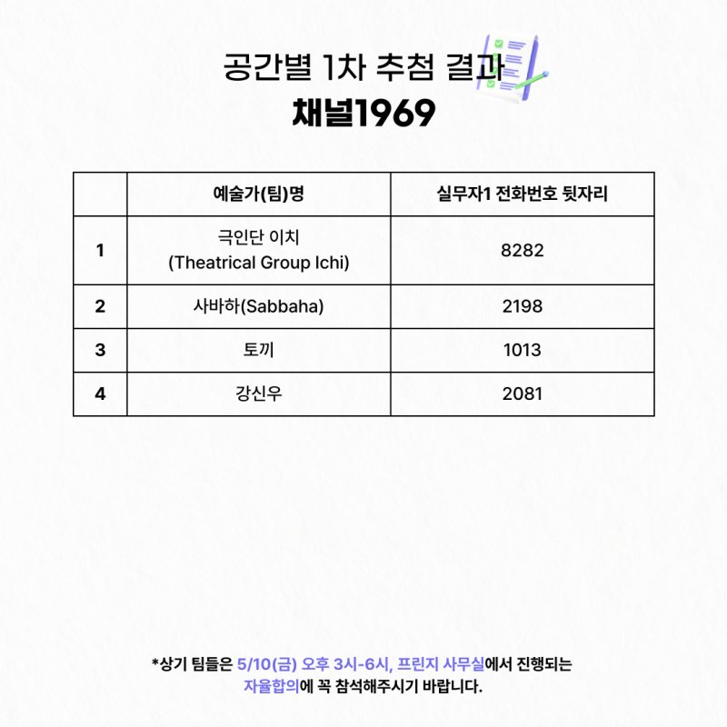 5.10(±Ý) ä³Î1969 15:00-18:00 / Àå¼Ò: ÇÁ¸°Áö »ç¹«½Ç