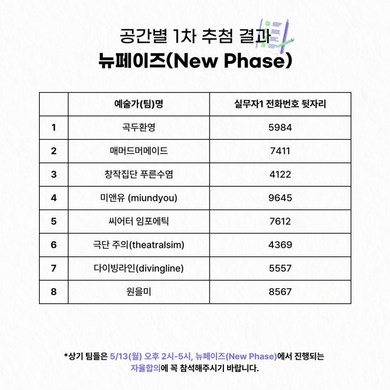 5.13(¿ù) New Phase 14:00-17:00 / Àå¼Ò: New Phase