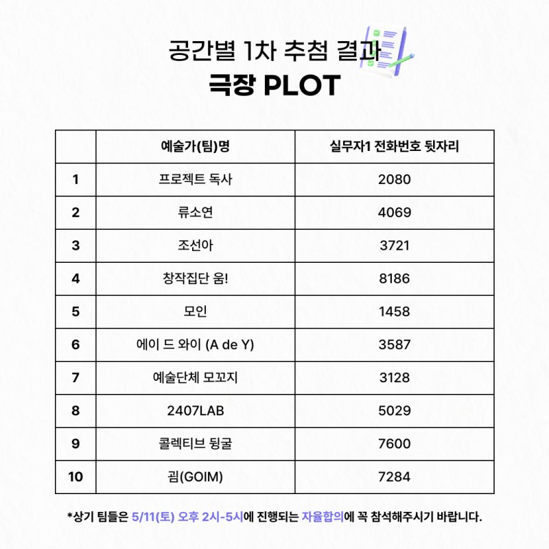 5.11(Åä) ±ØÀå PLOT 14:00-17:00 / Àå¼Ò: ÃßÈÄ °øÁö ¿¹Á¤