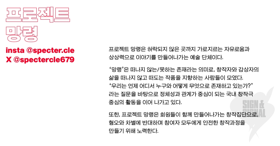 ÀúÈñ´Â µå¶ó¸¶°¡ °Á¶µÇ´Â »ç½ÇÁÖÀÇ ¿¬±ØÀ» ÁÖ·Î ¿Ã¸®´Â ÇÑÆí, ±ØÀå °ø°£ ÀÚü¸¦ ¹«´ëÀÇ ¹è°æÀ¸·Î Ȱ¿ëÇÏ´Â ½ÇÇèÀ» ½ÃµµÇؿԽÀ´Ï´Ù. ¹«¾ùº¸´Ùµµ ¡®ÁÁÀº ¿¬±ØÀº ÁÁÀº ±Ø´Ü¿¡¼ ³ª¿Â´Ù¡¯´Â ¹ÏÀ½À» ¹ÙÅÁÀ¸·Î °á°ú»Ó¸¸ ¾Æ´Ï¶ó âÀÛÀÇ °úÁ¤À» ¼ÒÁßÈ÷ ¿©±â¸ç ¹Ý±ÇÀ§ÀûÀÌ°í ºñÀ§°èÀûÀΠâÀÛ È¯°æÀ» ¸¸µé¾î °¡°í ÀÖ½À´Ï´Ù. Å»±ÇÀ§ÁÖÀÇ¿Í Å»À§°è¶ó´Â °ü½ÉÀÇ ¿¬Àå¿¡¼ ¡®ÇÁ·ÎÁ§Æ® ¸Á·É¡¯Àº ÇÁ·Î¿Í ¾Æ¸¶Ãß¾î, Á¦µµ¿Í ºñÁ¦µµ, Àü°øÀÚ¿Í ºñÀü°øÀÚ »çÀÌÀÇ °æ°è¸¦ ²÷ÀÓ¾øÀÌ ÀǽÉÇÏ¸ç ¡°¿ì¸®´Â ¹«¾ùÀÌµç ºñÃâ ¼ö ÀÖ°í, ¾îµðµç ³Ñ¾î°¥ ¼ö ÀÖÀ¸¸ç, ¾î¶»°Ôµç »î¿¡ ±êµç´Ù¡±¶ó´Â Ç¥¾î ¾Æ·¡ Ȱµ¿Çϰí ÀÖ½À´Ï´Ù.
